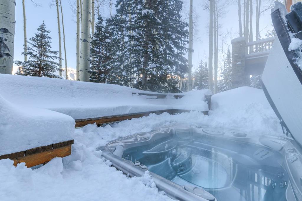 "Discover the Snowdrift Cabin by AvantStay: A Stunning Retreat with Direct Ski Access and a Relaxing Hot Tub, nestled in the beautiful surroundings of Telluride. Enjoy modern comforts like complimentary WiFi, a television, and a fully-equipped kitchen with a stovetop. Conveniently located just 10 kilometers from Telluride Regional Airport, this holiday home promises an unforgettable getaway."